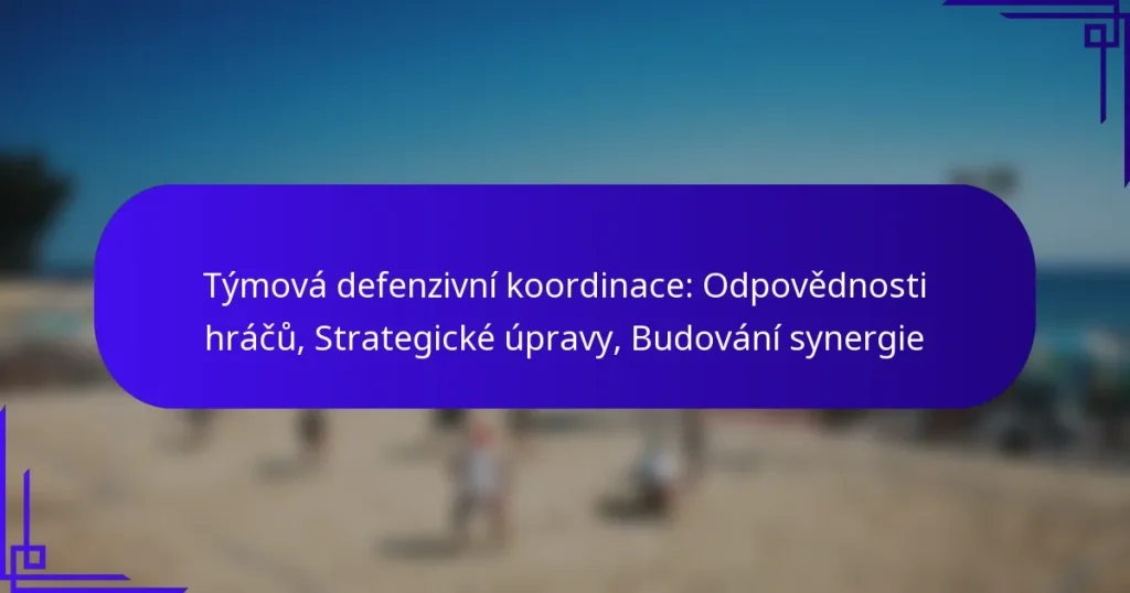 Týmová defenzivní koordinace: Odpovědnosti hráčů, Strategické úpravy, Budování synergie