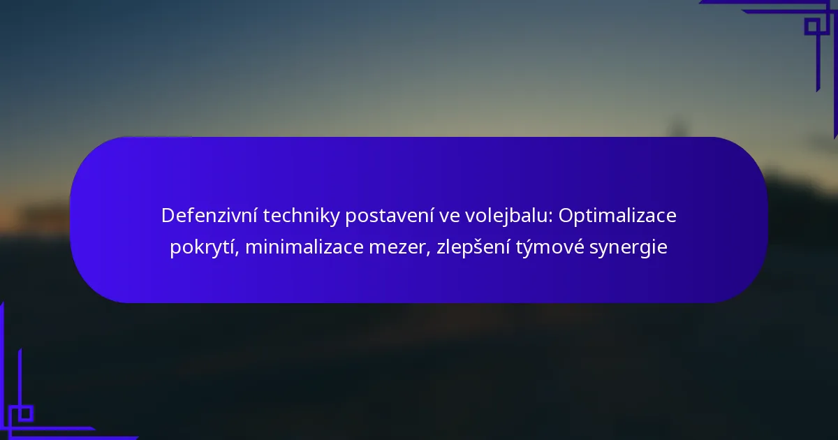 Defenzivní techniky postavení v volejbalu jsou nezbytné pro optimalizaci pokrytí, minimalizaci mezer a zlepšení týmové synergie. Strategickým umístěním hráčů a podporou efektivní komunikace mohou týmy přizpůsobit své strategie různým herním situacím a zajistit, že všechny oblasti hřiště jsou dobře chráněny proti útokům soupeře.