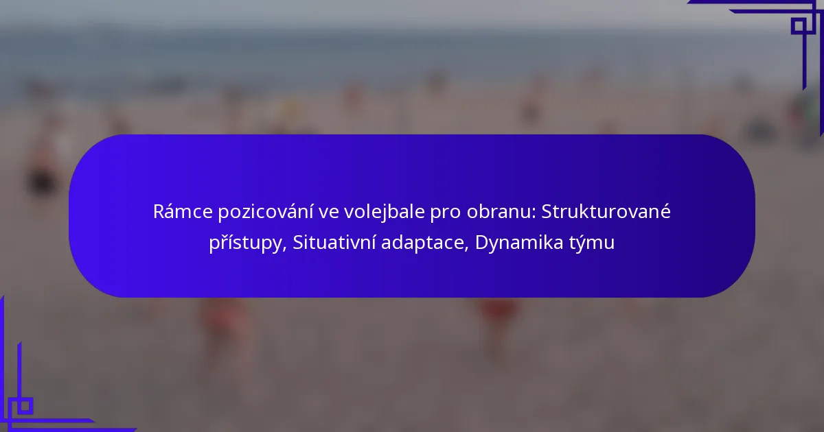 Defenzivní poziční rámce ve volejbalu poskytují strukturované přístupy k zlepšení výkonu týmu během defenzivních akcí. Tyto rámce se přizpůsobují různým herním situacím a zdůrazňují týmovou dynamiku, což zajišťuje efektivní pokrytí hřiště proti útokům soupeře.